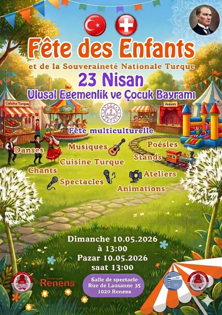 L’association TOAB organise e dimanche 10 mai 2026 dans la salle de spectacles de Renens la Fête des Enfants et de la Souveraineté Turque.