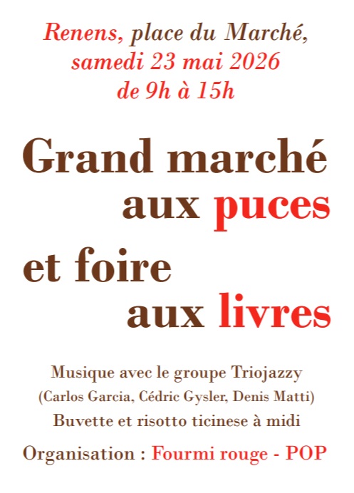 La FOURMI ROUGE organise un grand marché aux puces et une foire aux livres le samedi 23 mai 2026 de 9hà15h sur la Place du Marché.